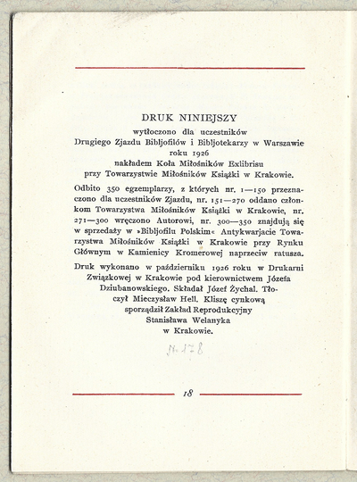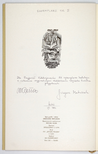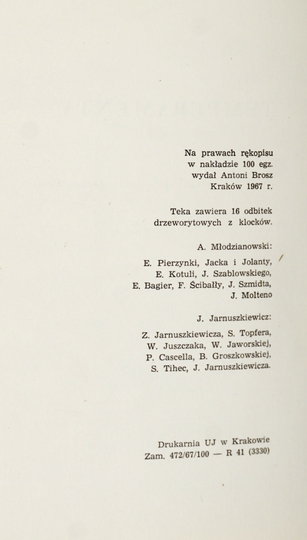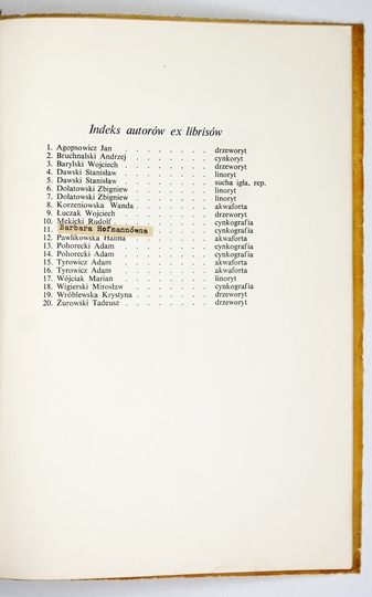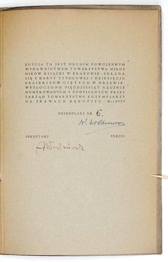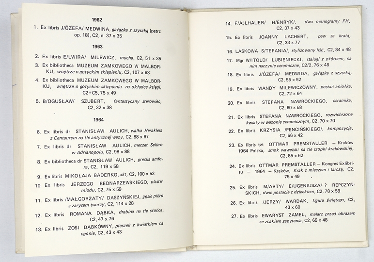 CETTE publication a été editée en l'honneur des membres du X-e Congres International de l'Ex-libris a Cracovie par les cercle des amateurs de l'ex-libris en Pologne. Cracovie 1964. Red. Antoni Brosz. Druk. Wydawnicza Kraków. 4, s. [10], tabl. 23. brosz.