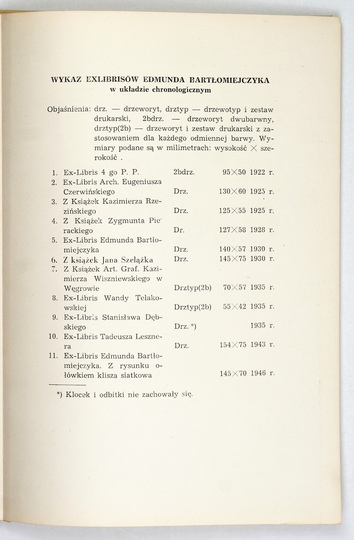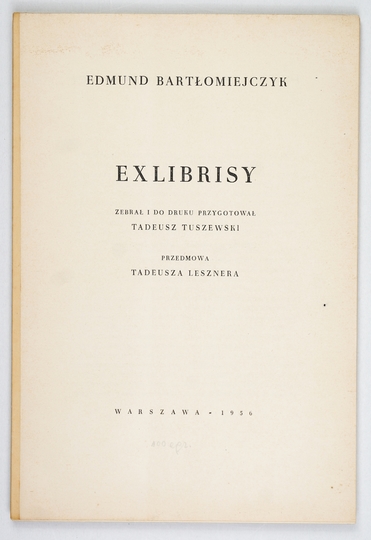 BARTŁOMIEJCZYK Edmund – Exlibrisy. Zebrał i do druku przygotował Tadeusz Tuszewski. Przedmowa Tadeusza Lesznera. Warszawa 1956. B.w. 8, s. 9, [2], tabl. 10. oryg. teka kart.