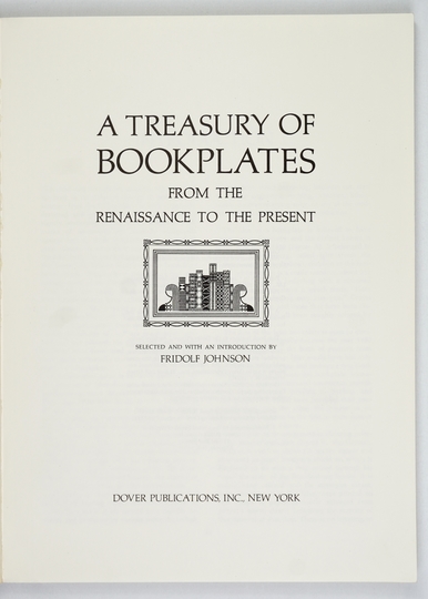 JOHNSON Fridolf – A Treasury of Bookplates from the Renaissance to the Present. Selected and with an Introduction by ... With 761 illustrations. New York [cop. 1977]. Dover Publications. 4, s. VII, [1], 151. brosz.