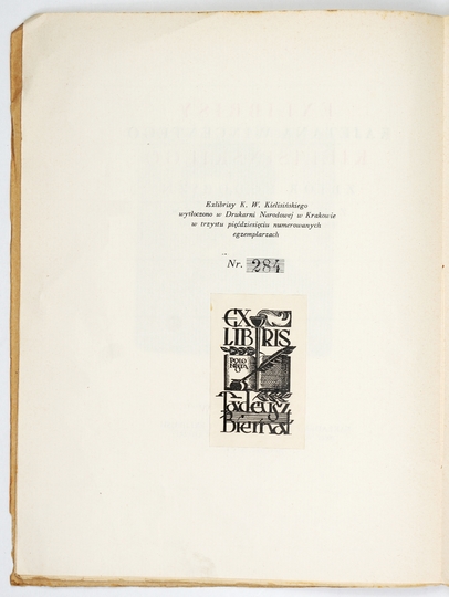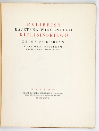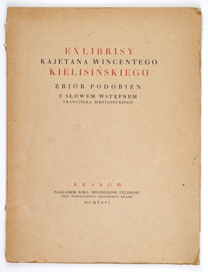 [KIELISIŃSKI Kajetan Wincenty]. Exlibrisy ... Zbiór podobizn. Z słowem wstępnem Franciszka Biesiadeckiego. Kraków 1926. Nakł. Koła Miłośników Książki. 4, s. 8, tabl. 23. brosz.