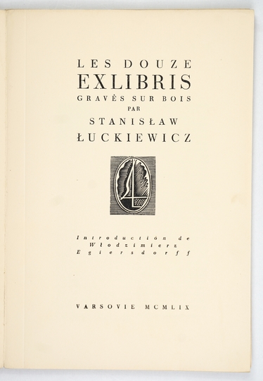 ŁUCKIEWICZ Stanisław – Les douze exlibris gravés sur bois par ... Introduction de Włodzimierz Egiersdorff. Varsovie 1959. Imprim. d'Experimentation de l'Academie des Beaux Arts. 4, s. [8], tabl. 12. oryg. obw.