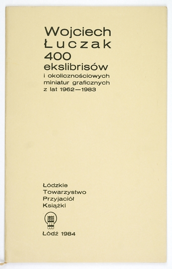 ŁUCZAK Wojciech – 400 ekslibrisów i okolicznościowych miniatur graficznych z lat 1962-1983. Łódź 1984. Łódzkie Tow. Przyjaciół Książki. 4, s. [16], tabl. 2. brosz., obw.