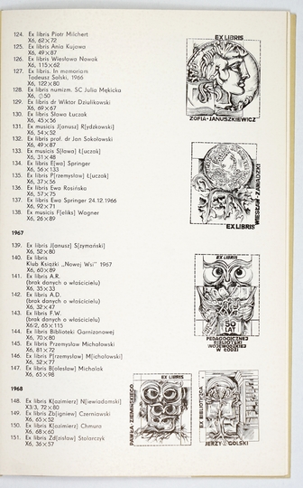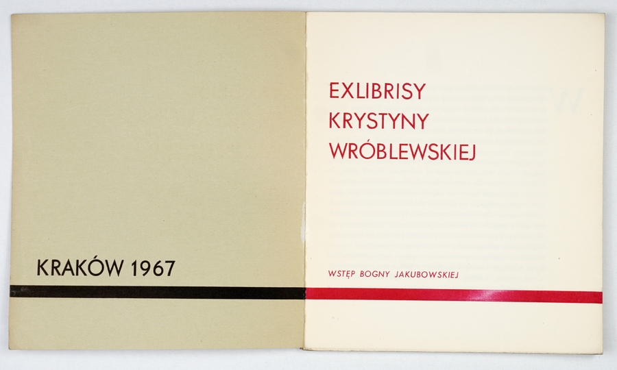WRÓBLEWSKA Krystyna – Exlibrisy ... Wstęp Bogny Jakubowskiej. Kraków 1967. Druk. szkoln. Technikum Poligraficzno-Księgarskiego. 16d, s. 45, [3]. brosz.