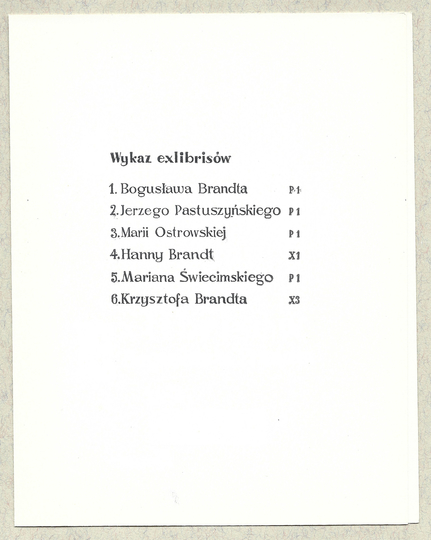 [BRANDT Bogusław]. 6 exlibrisów Bogusława Brandta. Warszawa 1969. B.w. 8, s. [4], tabl. 6, oryg. obw.