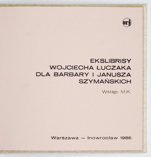 ŁUCZAK Wojciech – Ekslibrisy Wojciecha Łuczaka dla Barbary i Janusza Szymańskich. Wstęp M.K. [= Michał Kuna]. Warszawa-Inowrocław 1986. WJ. 16d, s. [12], tabl. 12. opr. oryg. kart.