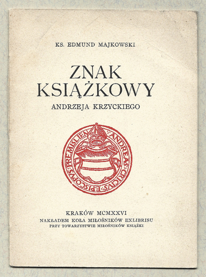 MAJKOWSKI Edmund – Znak książkowy Andrzeja Krzyckiego. Kraków 1926. Koło Miłośników Exlibrisu przy Tow. Miłośników Książki. 16d, s. 18. brosz.