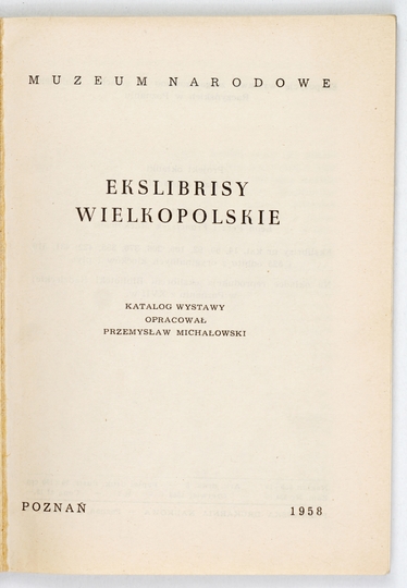 MICHAŁOWSKI Przemysław – Ekslibrisy wielkopolskie. Katalog wystawy oprac. ... Poznań 1958. Muz. Narodowe. 16d, s. 79. brosz.