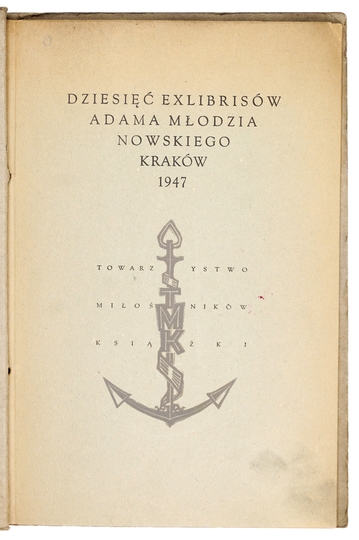 MŁODZIANOWSKI Adam – Dziesięć exlibrisów Adama Młodzianowskiego. Kraków 1947. Towarzystwo Miłośników Książki. 8, k. [2], tabl. 10. brosz.