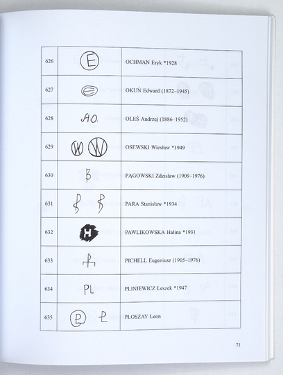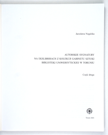 NOGALSKA Jarosława – Autorskie sygnatury na ekslibrisach z kolekcji Gabinetu Sztuki Biblioteki Uniwersyteckiej w Toruniu. Cz. 2. Toruń 2003. Wyd UMK. 4, s. 142. brosz.