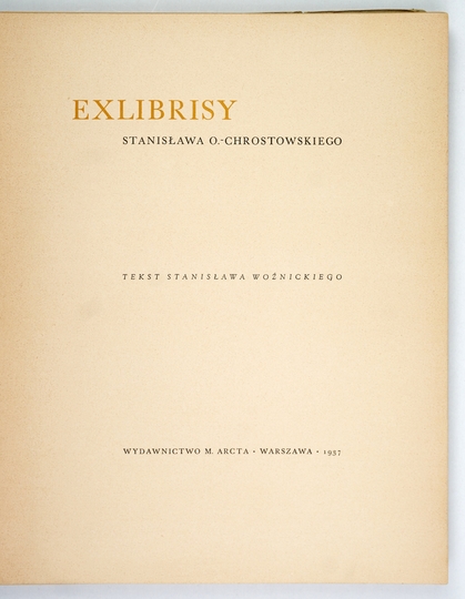 OSTOJA-CHROSTOWSKI Stanisław – Exlibrisy ... Tekst Stanisława Woźnickiego. Warszawa 1937. M. Arcta. 4, s. 137, [1]. brosz.