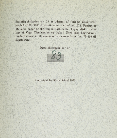 RÖDEL Klaus – Stanislaw Dawski. En polsk grafiker og exlibriskunstner. Fredrikshavn 1972. Exlibristen. 8, s. 13, tabl. 8. brosz.