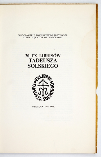 [SOLSKI Tadeusz]. 20 ex librisów Tadeusza Solskiego. Wrocław 1968. Wrocławskie Tow. Przyjaciół Sztuk Pięknych. 4, s. [11], tabl. 20. brosz.