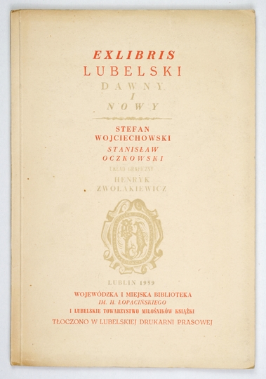 WOJCIECHOWSKI Stefan, OCZKOWSKI Stanisław – Katalog exlibrisu lubelskiego dawnego i nowego. Lublin 1959. Wojew. i Miejska Biblioteka Publiczna [...]. 8, s. 23, [4], tabl. 16. brosz.