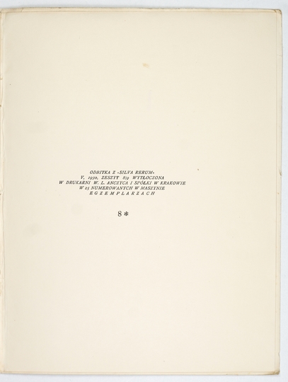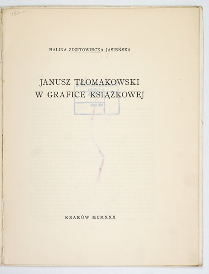 ZDZITOWIECKA-JASIEŃSKA Halina – Janusz Tłomakowski w grafice książkowej. Kraków 1930. Druk. W. L. Anczyca. 4, s. 5, [3], tabl. 9. brosz. Odb. z t. 5 "Silva Rerum".