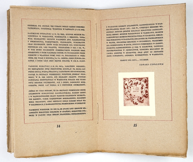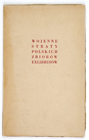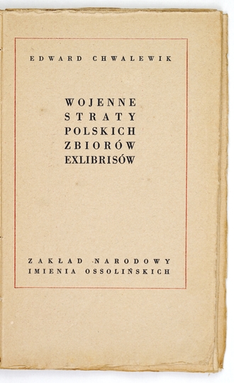 CHWALEWIK Edward – Wojenne straty polskich zbiorów ekslibrisów. Wrocław 1949. Ossolineum. 8, s. 15. opr. oryg. miękka kart.