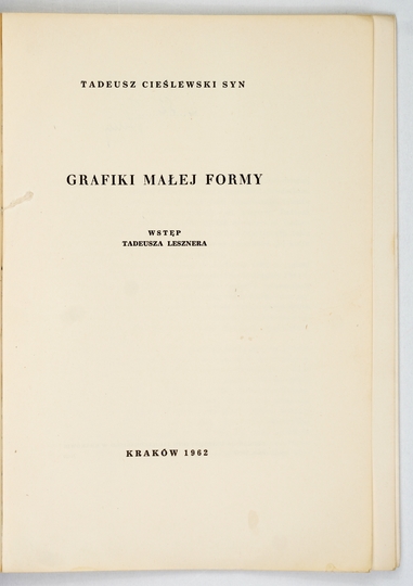 CIEŚLEWSKI Tadeusz syn – Grafiki małej formy. Wstęp Tadeusza Lesznera. Kraków 1962. Drukarnia UJ. 8, s. VII, [1], tabl. 12. brosz.