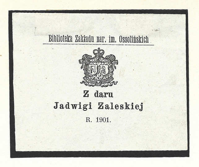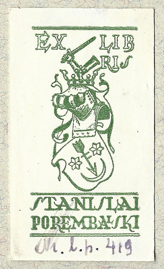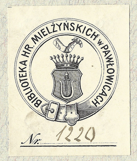 [PONIŃSKI Aleksander Franciszek]. Biblioteka Szelejewska. Ex-Libris Biblioteki Horynieckiej.