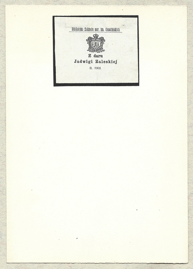 [OSTROWSKI Juliusz Karol]. Ex libris Comitis Ostrowski.