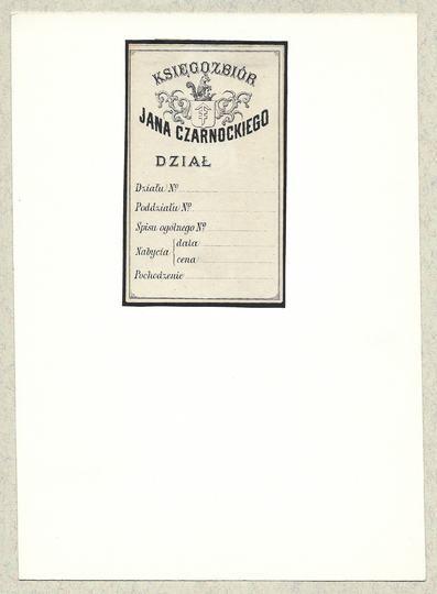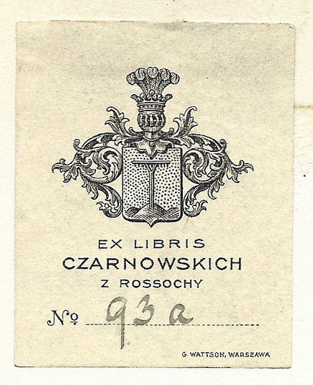 [CZARNOWSCY]. Ex libris Czarnowskich z Rossochy.