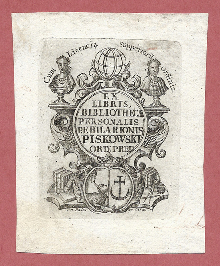 [PISKOWSKI Hilary]. Ex libris bibliothecae personalis P[atris] F[ratris] Hilarionis Piskowski Ord[inis] Pred[icatorum].