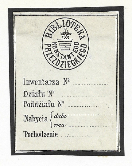 [PRZEZDZIECKI Konstanty]. Biblioteka Konstantego Przezdzieckiego.