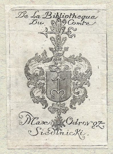 [SIEDLNICKI Maksymilian]. De La Bibliotheque Du Comte Max: Odrovąż Siedlnicki.