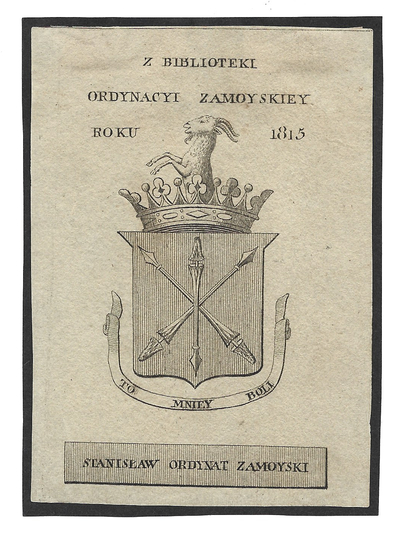 [ZAMOYSKI Stanisław]. Z biblioteki Ordynacyi Zamoyskiey roku 1815. Stanisław ordynat Zamoyski.