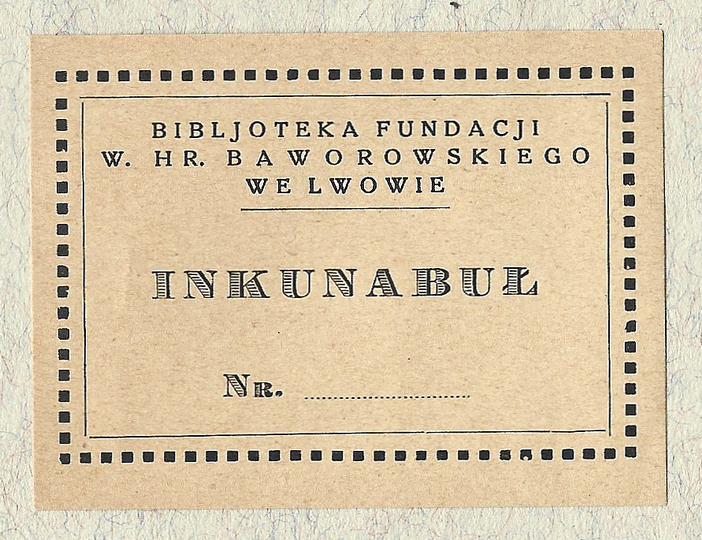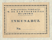 [BAWOROWSKI Wiktor]. Bibljoteka Fundacji W. hr. Baworowskiego we Lwowie. Inkunabuł.