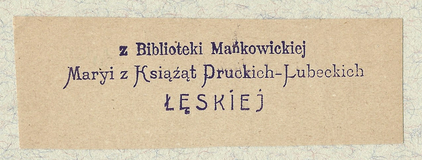 [ŁĘSKA Maria]. Z Biblioteki Mańkowickiej Maryi z Ksiąźąt Druckich-Lubeckich Łęskiej.