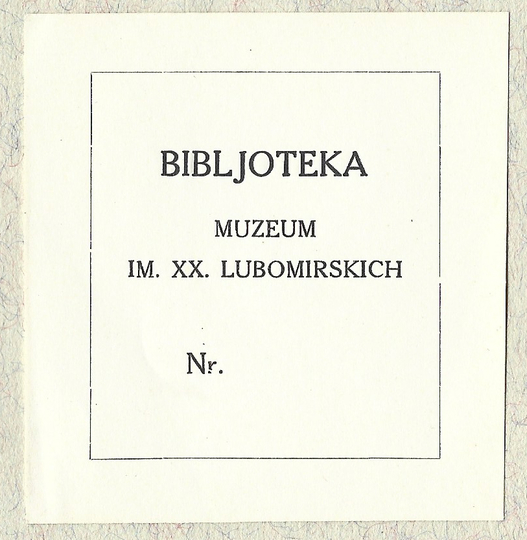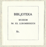 [MUZEUM im. XX. Lubomirskich]. Bibljoteka Muzeum im. XX. Lubomirskich.