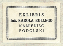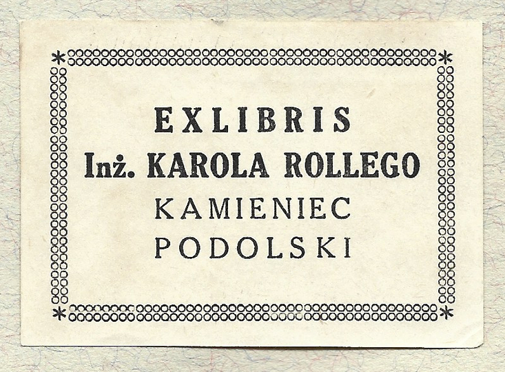 [ROLLE Karol]. Exlibris Inż. Karola Rollego, Kamieniec Podolski.