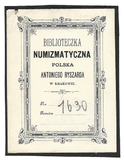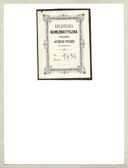 [RYSZARD Antoni]. Biblioteczka numizmatyczna polska Antoniego Ryszarda w Krakowie.