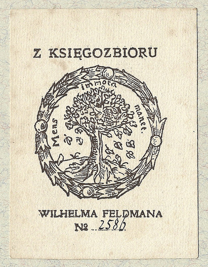 [FELDMAN Wilhelm]. Z księgozbioru Wilhelma Feldmana.