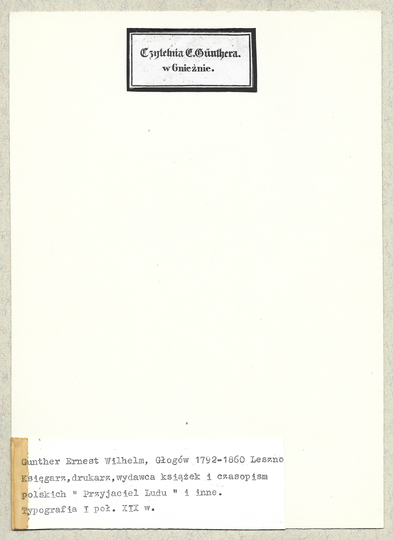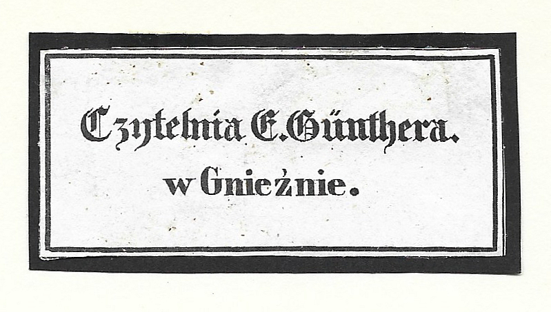 [GÜNTHER Ernest]. Czytelnia E. Günthera w Gnieźnie.