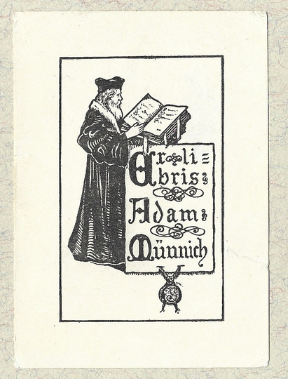 [MÜNNICH Adam]. Ex libris Adam Münnich.