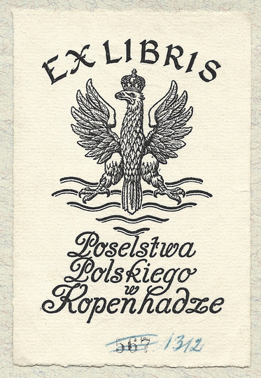 [POSELSTWO RP w Kopenhadze]. Ex libris Poselstwa Polskiego w Kopenhadze.