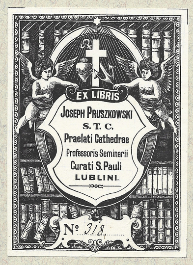 [PRUSZKOWSKI Józef]. Ex libris Joseph Pruszkowski S.T.C., Praelati Cathedrae, Professoris Seminarii Curati S. Pauli Lublini.