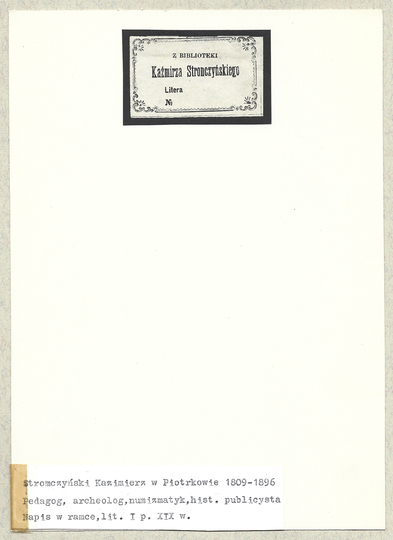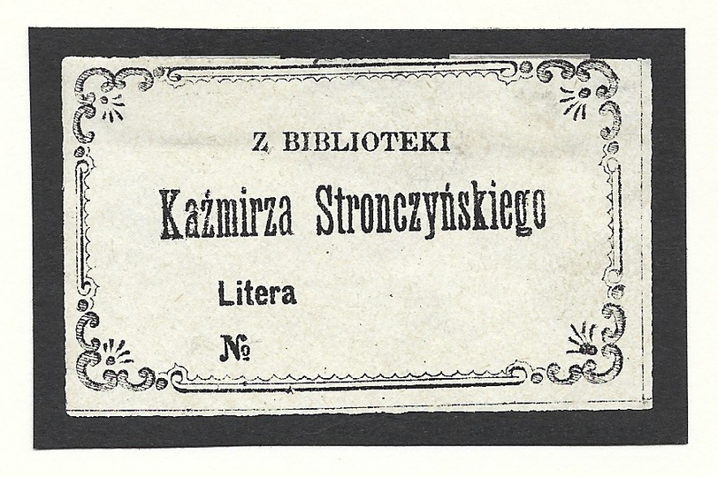 [STRONCZYŃSKI Kazimierz]. Z biblioteki Kaźmirza Stronczyńskiego.