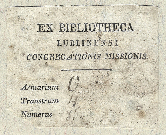 [ZGROMADZENIE ks. Misjonarzy]. Bibliotheca Lublinensi Congregationis Missionis.