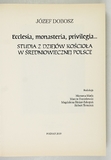 DOBOSZ Józef – Ecclesia, monasteria, privilegia ... Studia z dziejów kościoła w średniowiecznej Polsce. Red. Marzena Matla, Marcin Danielewski, Magdalena Biniaś-Szkopek, Robert Tomczak. Poznań 2019. Uniwersytet i. Adama Mickiewicza w Poznaniu. 8, s. 401. opr. oryg. kart.