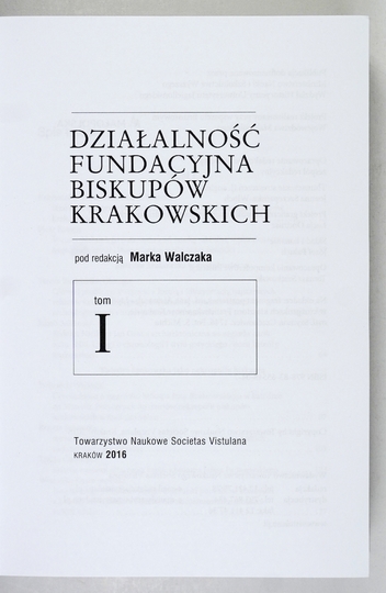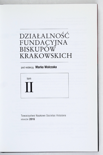 WALCZAK Marek – Działalność fundacyjna biskupów krakowskich. Pod red. ...T. 1-2. Kraków 2016. Towarzystwo Naukowe Societatis Vistulana. 8, s. 950, [1]; 316. opr. oryg. kart.