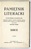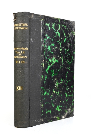 PAMIĘTNIK Literacki. Czasopismo kwartalne poświęcone historyi i krytyce literatury polskiej wydawane przez Towarz. Lit. im. Adama Mickiewicza. Pod red. Wiktora Hahna. R. XII. Lwów 1913. Drukarnia Polska. 8, s. VIII, [2], II, 512. opr. ppł. z epoki.