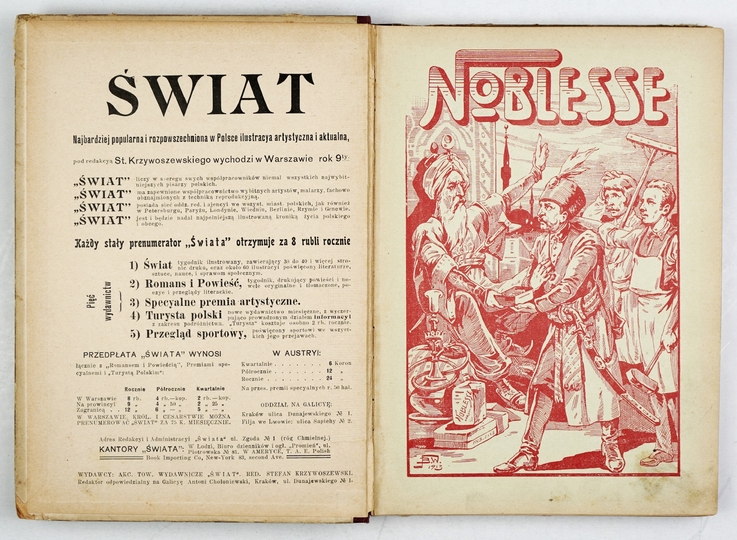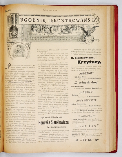 [R. 41], półrocze 2, nr 27-52: 7 VII (24 VI) 1900-29 (16) XII 1900. Warszawa. Nakł. Gebethner i Wolff. Red. Józef Wolff. 4. s. [4], 1032. razem opr. pł. z epoki.