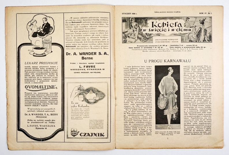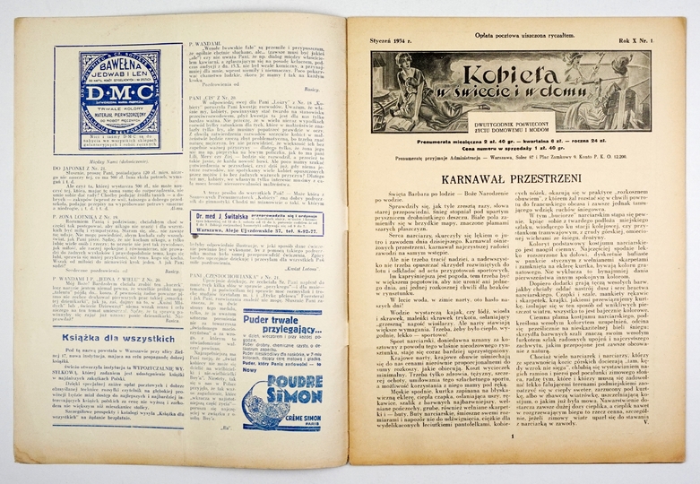 KOBIETA w Świecie i w Domu. Dwutygodnik poświęcony życiu domowemu i modom. Warszawa. Red. M. Podhorska-Okołów. Tow. Wyd. "Bluszcz". 4. brosz.