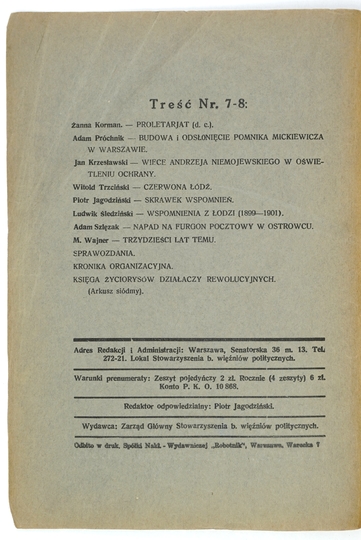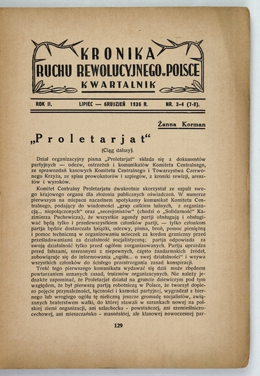 R. 2, nr 3-4 (7-8): VII-XII 1936. Warszawa. Druk. S-ki Nakł.-Wyd. "Robotnik". 8, s. 129-207, [1], 97-112, tabl. 5. brosz.