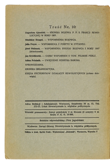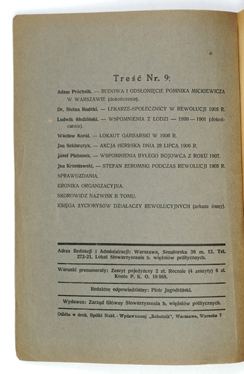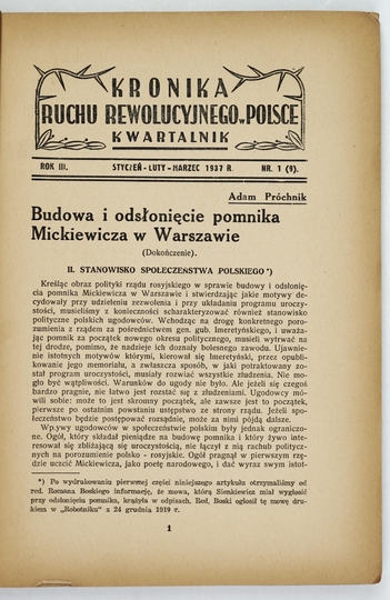 R. 3, nr 1 (9): I-III 1937. Warszawa. Druk. S-ki Nakł.-Wyd. "Robotnik". 8, s. 63, [1], 113-128, tabl. 5. brosz.