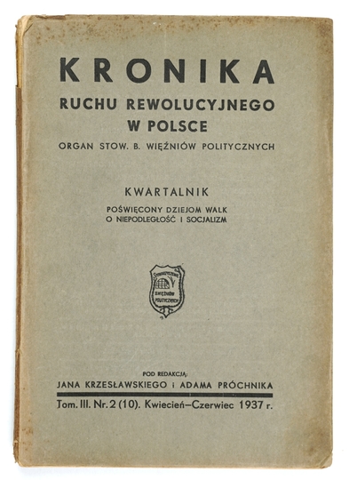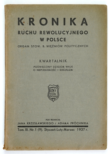 KRONIKA Ruchu Rewolucyjnego w Polsce. Organ Stow. b. Więźniów Politycznych. Kwartalnik poświęcony dziejom walk o niepodległość i socjalizm. Pod red. Jana Krzesławskiego i Adama Próchnika