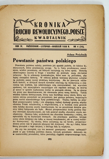 R. 4, nr 4 (16): X-XII 1938. Warszawa. Druk. S-ki Nakł.-Wyd. "Robotnik". 8, s. 193-255, [1], 225-240, tabl. 5. brosz.