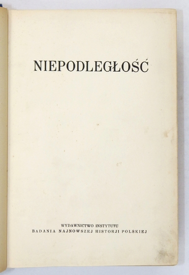 NIEPODLEGŁOŚĆ. [Czasopismo poświęcone dziejom polskich walk wyzwoleńczych w dobie popowstaniowej]. [Warszawa]. Wyd. Inst. Badania Najnowszej Historji Polskiej. 8. razem opr. oryg.? pł.