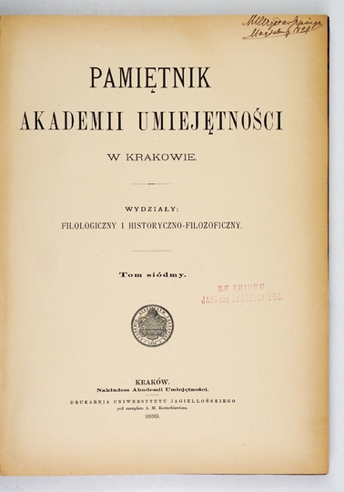 PAMIĘTNIK Akademii Umiejętności w Krakowie. Wydz.: Filologiczny i Historyczno-Filozoficzny.